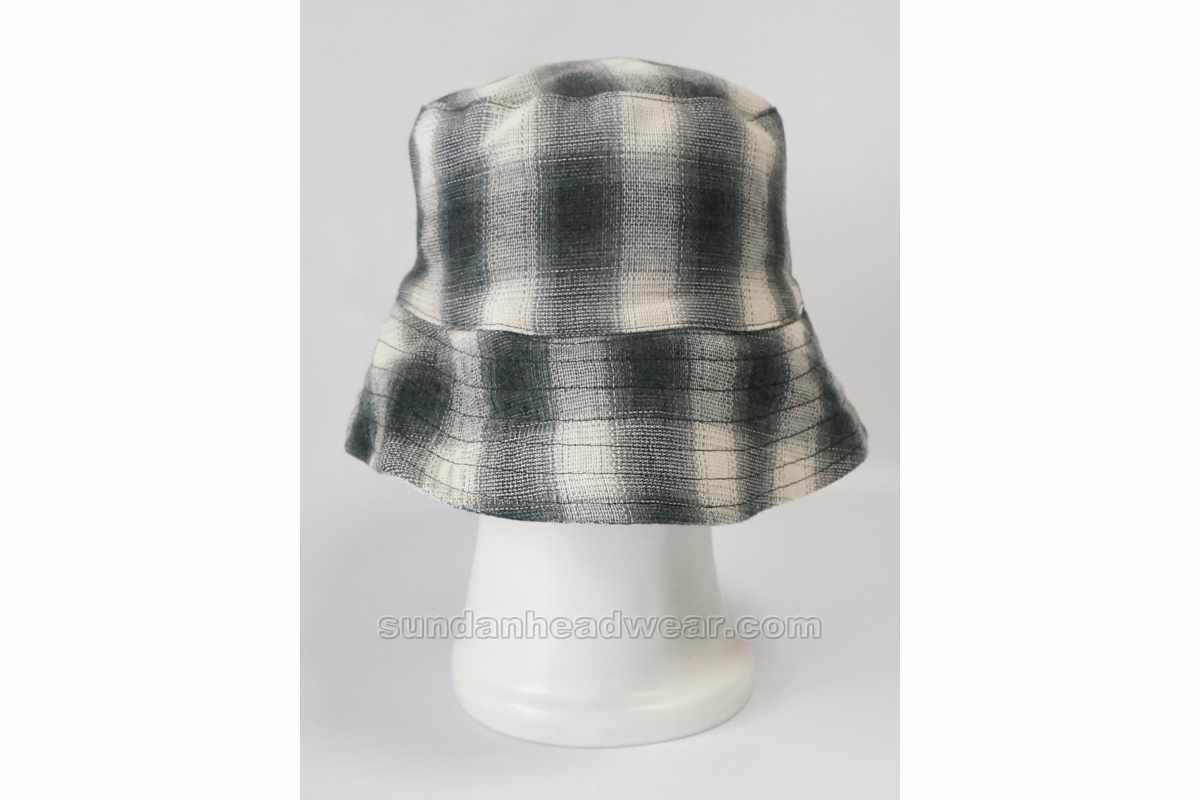 A classic bucket hat, the fabric is plaid patterns, which is nice looking, multiple patterns for choosing, it can add custom embroidery logo or woven label logo on cap crown.